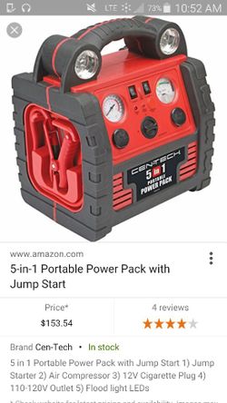 Cen tech 4 in 1 portable power pack reviews. Product Length 13-12 in. Up to 3 cash back CEN-TECH AC Volts 120 Battery capacity 17 Ah Battery indicator Yes Battery type Lead acid Batterys Included yn Yes Cable gauge 7 AWG Cable length ft 42 in. Product Weight 175 lb.